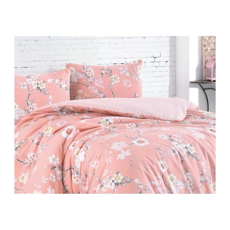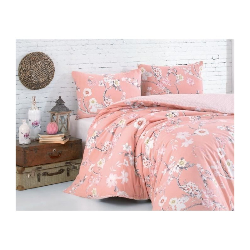 Parure de lit - 1 housse de couette 220 x 240 cm + 2 taies d'oreiller 60 x 60 cm - 100% coton renforcé - Poudre