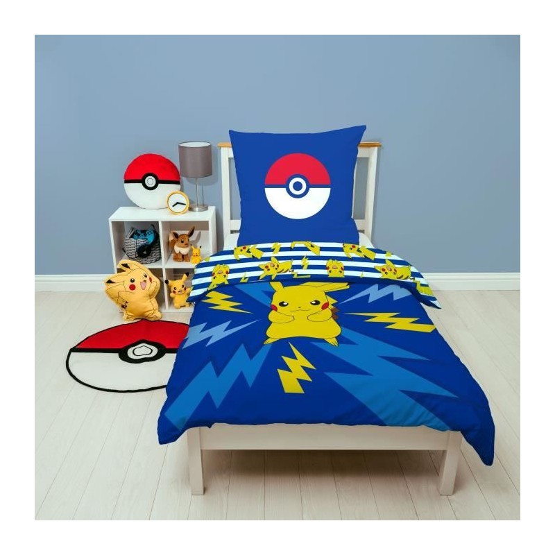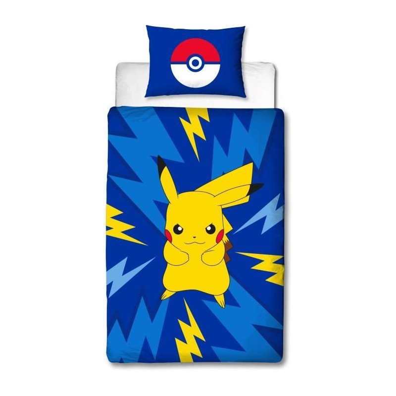 Parure de lit réversible - POKEMON - Pikachu IV - Microfibre - 1 housse de couette 140 x 200 cm + 1 taie 63 x 63 cm