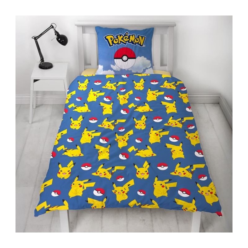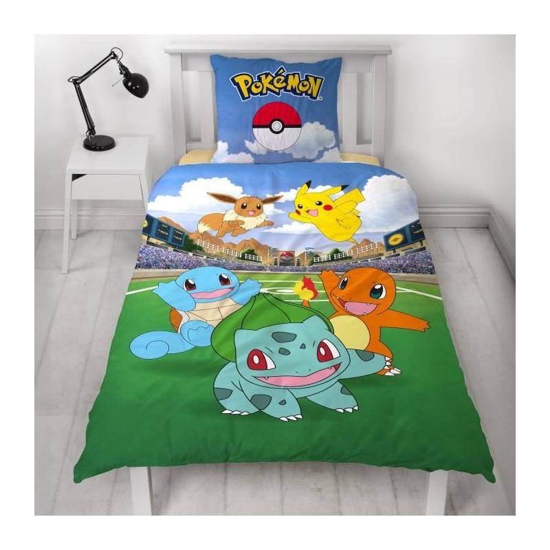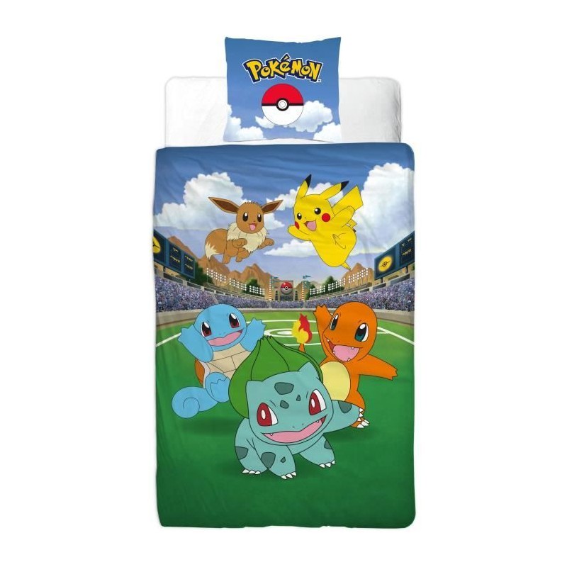 Parure de lit réversible - POKEMON - Pikachu et ses amis a l'Arena - Microfibre - 140 x 200 cm + 1 taie 63 x 63 cm