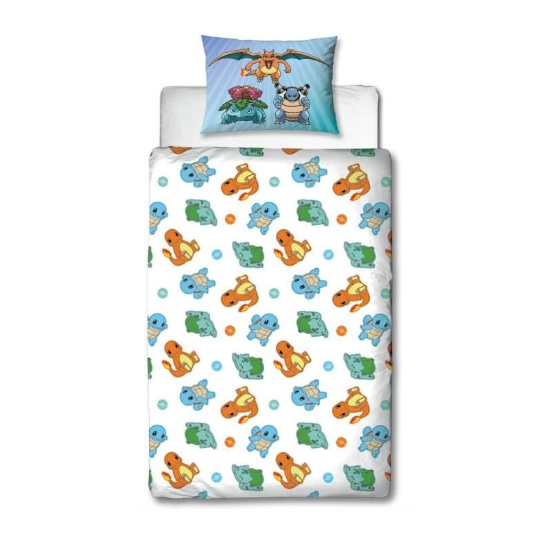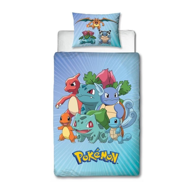 Parure de lit réversible - POKEMON - Pikachu et Starter - Bleu - Microfibre - 1 housse de couette 140 x 200 cm + 1 taie 63 x 63