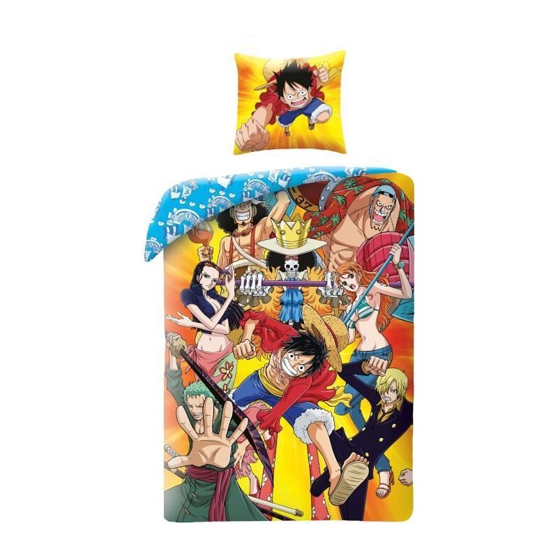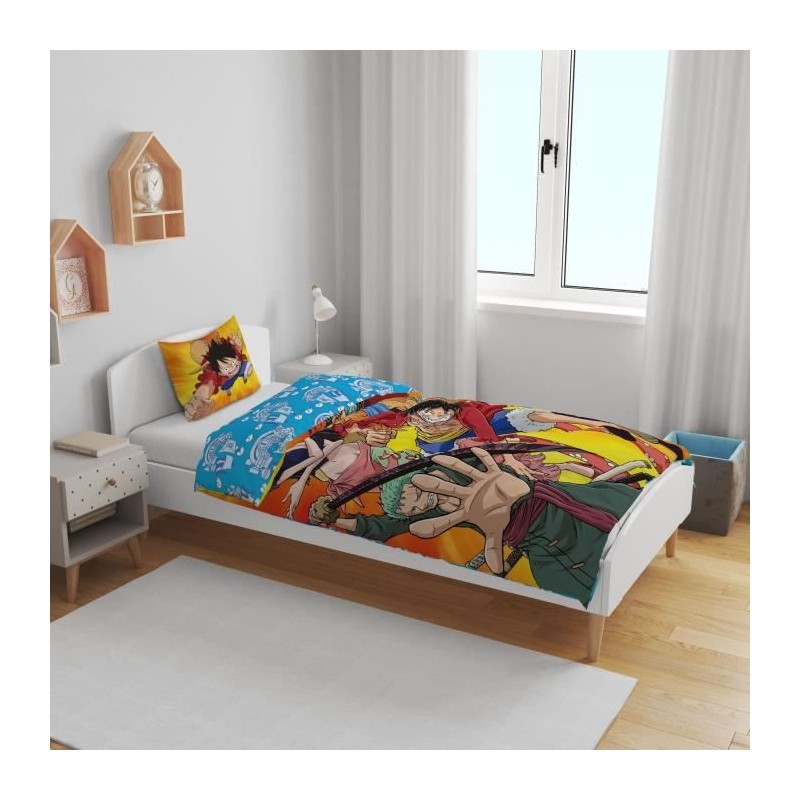 Apportez une touche unique a votre intérieur avec ce offrez a la chambre de votre enfant une touche unique avec cette parure de lit sous licence, représentant fidelement votre personnage ou univers préféré. confortable, légere et facile a entretenir, elle associe style et douceur pour des nuits de reves inspiré de l'univers Parure de lit ONE PIECE Luffy et son équipage IV Microfibre 1 housse de couette 140 x 200 cm + 1 taie 63 x 63 cm. Sa conception associe praticité et esthétisme pour créer une ambiance chaleureuse et accueillante. Ses détails soignés et son design caractéristique en font un élément décoratif qui complete harmonieusement une chambre, un salon ou tout espace de détente. Grâce a sa qualité de fabrication et a son allure inspirée, il s'integre facilement dans différents styles de décoration.