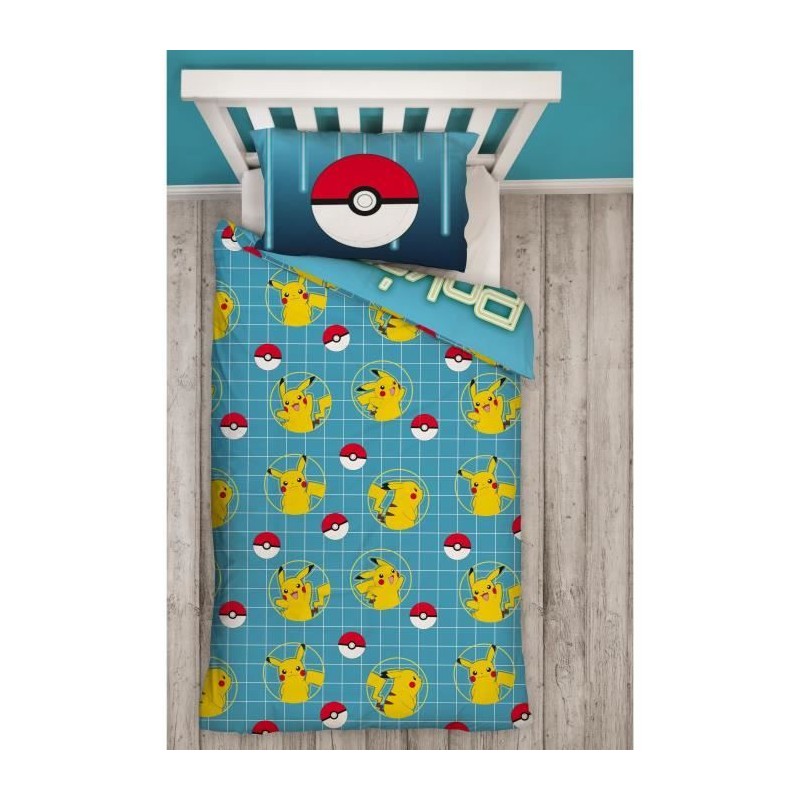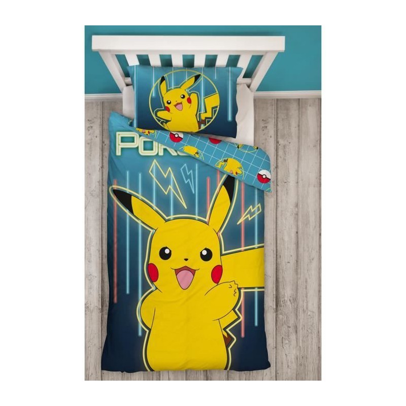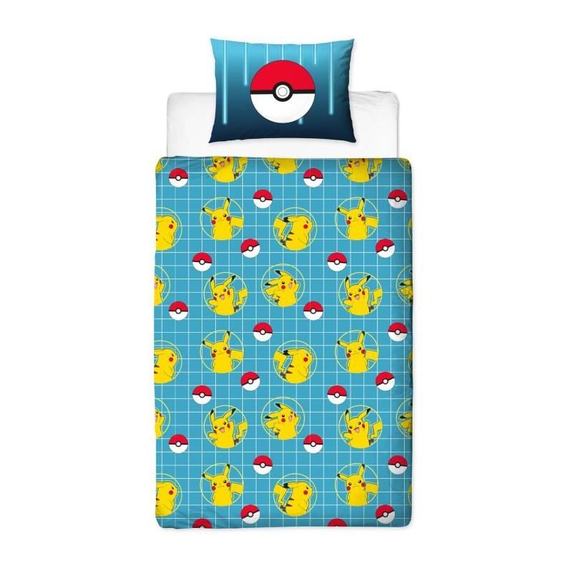 Parure de lit réversible - POKEMON - Pikachu Laser - Microfibre - 1 housse de couette 140 x 200 cm + 1 taie 63 x 63 cm
