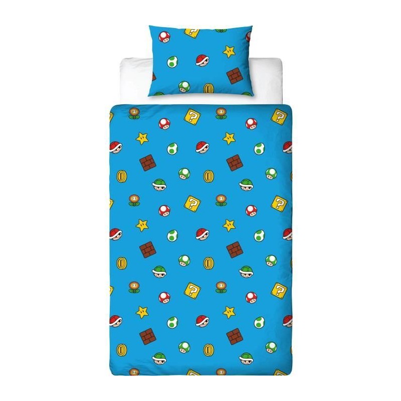 Parure de lit réversible - MARIO BROS - Mario et ses amis IV - Microfibre - 1 housse de couette 140 x 200 cm + 1 taie 63 x 63 c