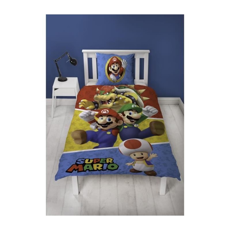 Apportez une touche unique a votre intérieur avec ce offrez a la chambre de votre enfant une touche unique avec cette parure de lit sous licence, représentant fidelement votre personnage ou univers préféré. confortable, légere et facile a entretenir, elle associe style et douceur pour des nuits de reves inspiré de l'univers Parure de lit réversible MARIO BROS Mario et ses amis IV Microfibre 1 housse de couette 140 x 200 cm + 1 taie 63 x 63 cm. Sa conception associe praticité et esthétisme pour créer une ambiance chaleureuse et accueillante. Ses détails soignés et son design caractéristique en font un élément décoratif qui complete harmonieusement une chambre, un salon ou tout espace de détente. Grâce a sa qualité de fabrication et a son allure inspirée, il s'integre facilement dans différents styles de décoration.
