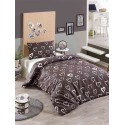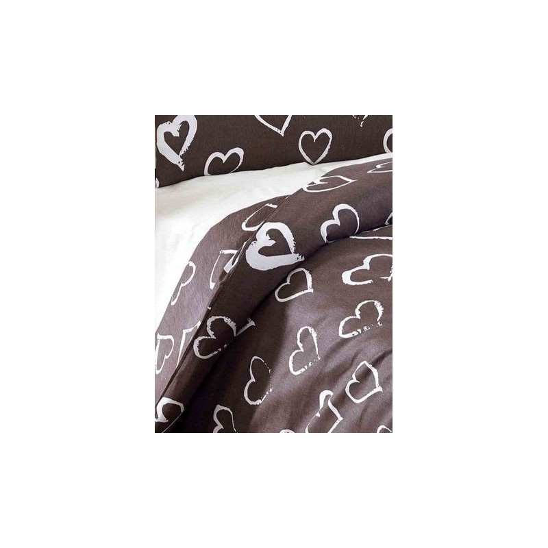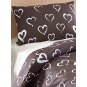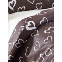 Parure de lit - 1 housse de couette 140 x 200cm + 1 taies d'oreiller 60 x 60 cm - Imprimé coeur Brun