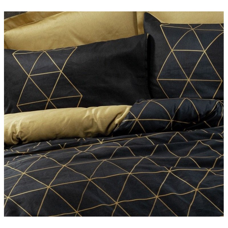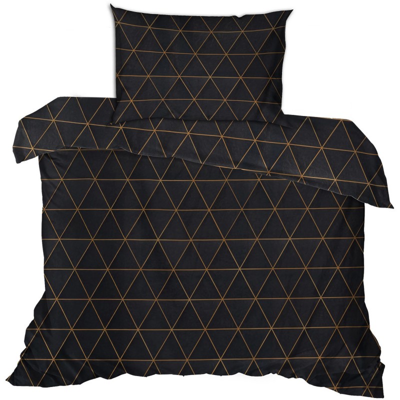 Parure de lit - 1 housse de couette 140 x 200cm + 1 taies d'oreiller 60 x 60 cm - 100% coton renforcé - Imprimé graphique Noir