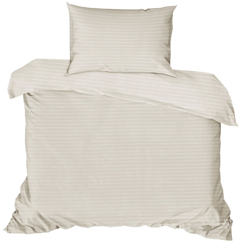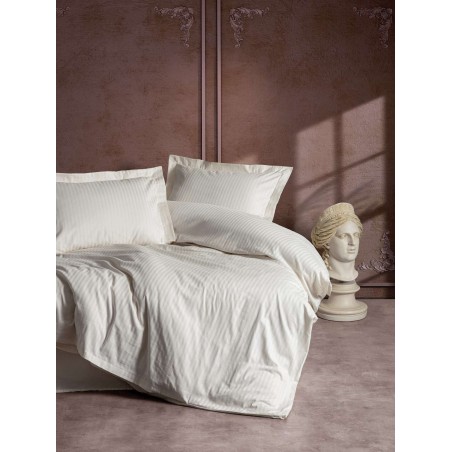 Parure de lit - 1 housse de couette 140 x 200cm + 1 taies d'oreiller 60 x 60 cm - Satin - Imprimé rayures Ecru