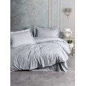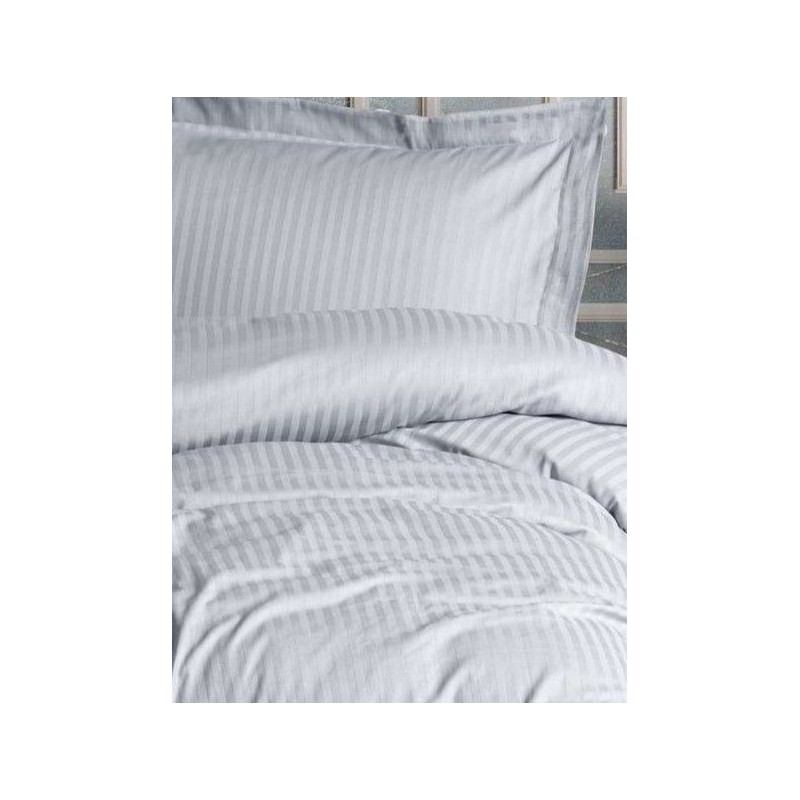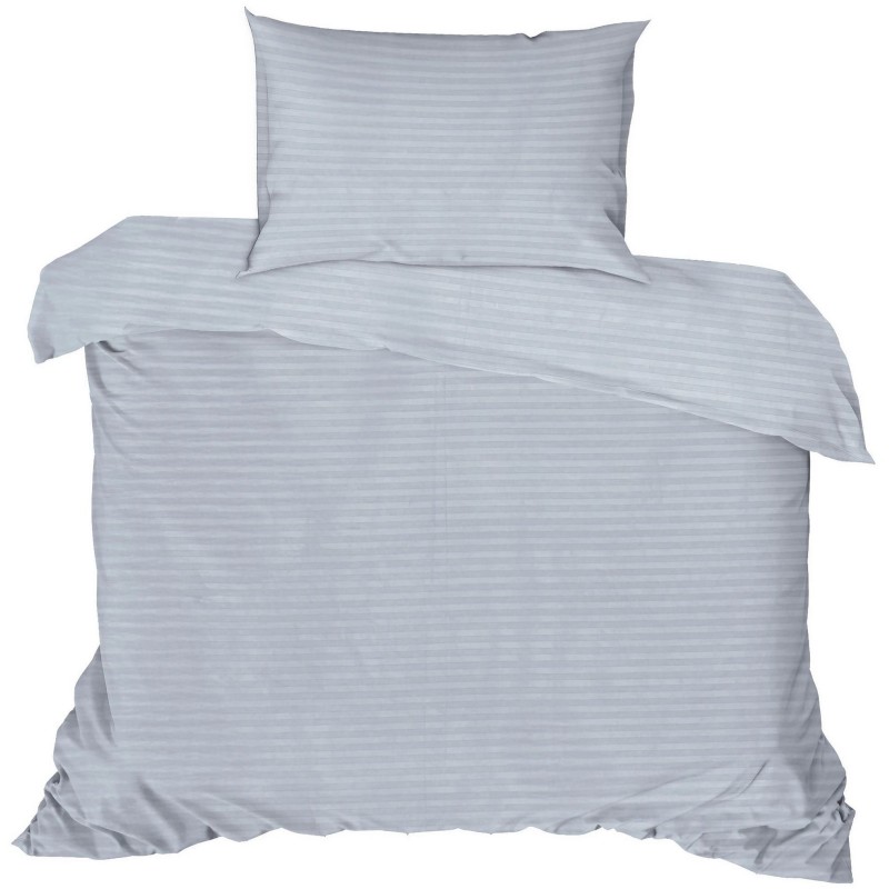 Parure de lit - 1 housse de couette 140 x 200cm + 1 taies d'oreiller 60 x 60 cm - Satin - Imprimé rayures Gris