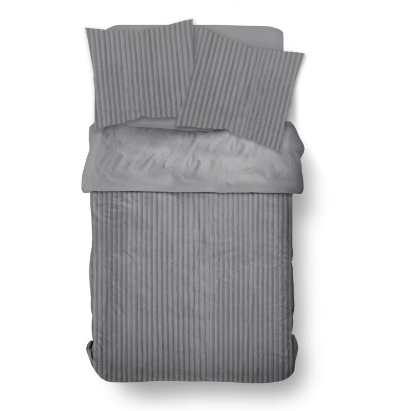 Parure de lit - TODAY - Cotelé - 2 personnes - 220 x 240 cm - Gris uni