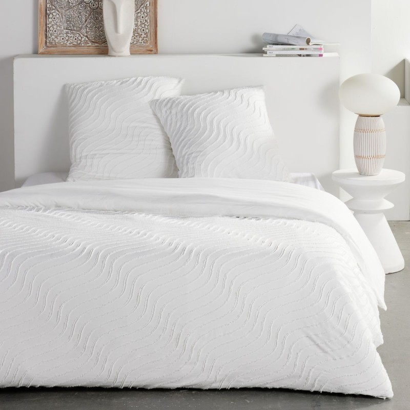 Parure de lit - TODAY - Essential - 2 personnes - 220 x 240 cm - Effet tufté vague blanc