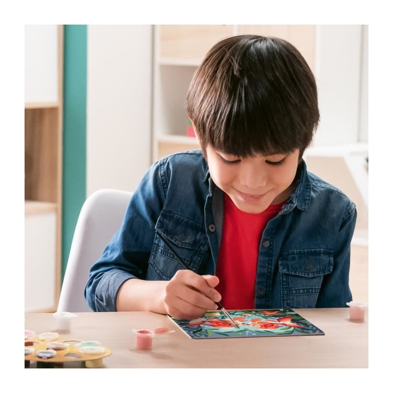 Un kit pour aller plus loin dans la peinture par numéros. C'est facile, beau et hyper amusant grâce aux lignes colorées pré-peintes ! Contient un tableau, des pots de peinture, un pinceau, un modele et un beau cadre.