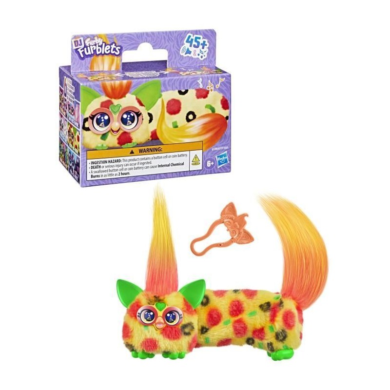 Furby DJ Furblets Pepp-Oh-Roni, Mini peluche électronique, jouet pour enfant, 45 sons et musiques, des 6 ans