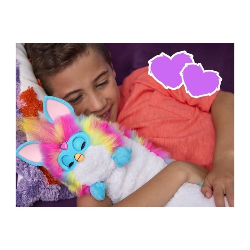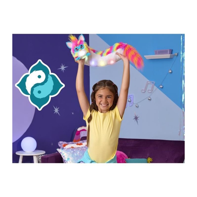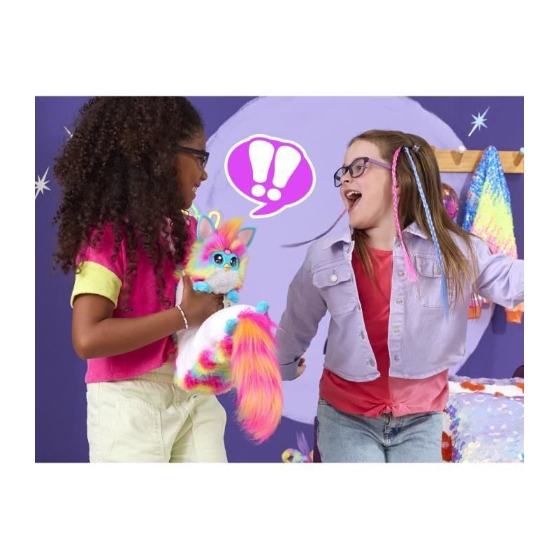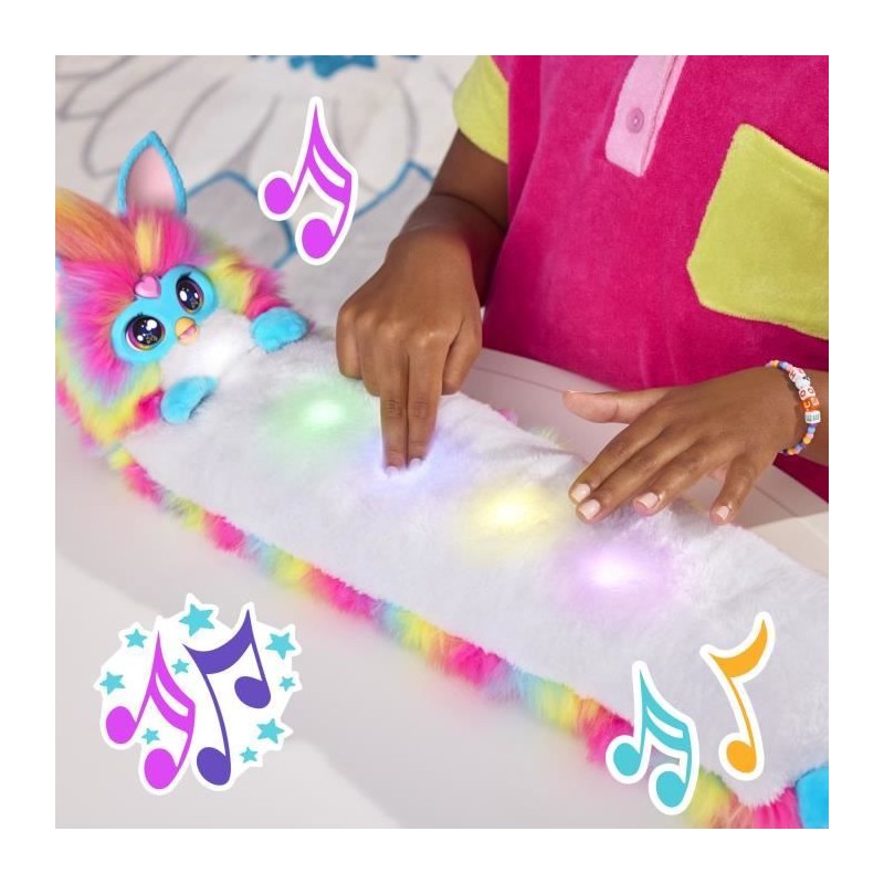 Furby DJ Furby, peluche douce électronique arc-en-ciel interactive avec musique, lumieres, mouvements et jeux, parle français