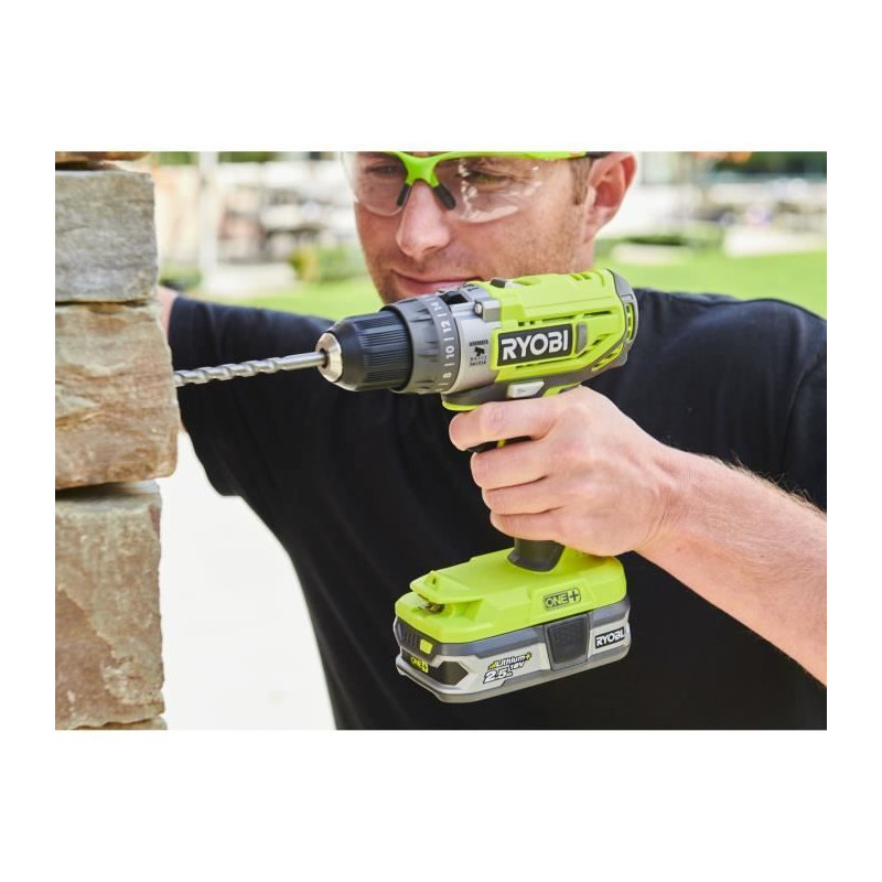 Perceuse-visseuse a percussion sans fil compacte - RYOBI - R18PD2-215G - 18V - Mandrin 10 mm - 2 batteries 1,5 Ah & chargeur 1,5