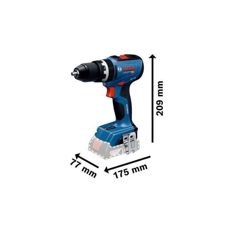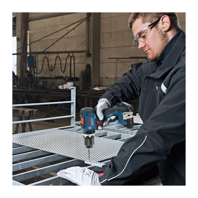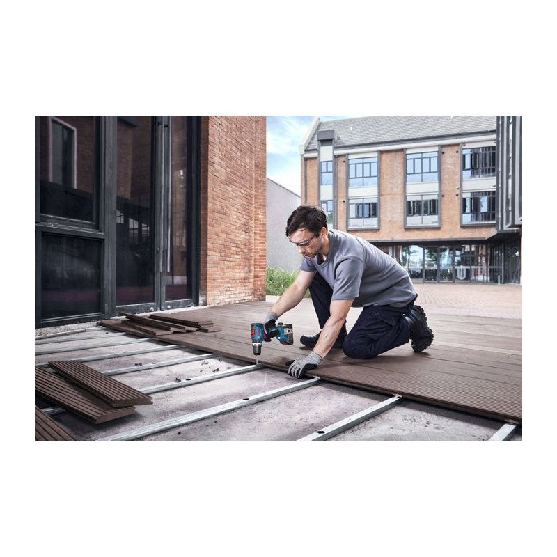 Perceuse-visseuse a percussion GSB 18V-65 BOSCH : Compacte et Puissante pour les Travaux Exigeants La BOSCH GSB 18V-65 est une perceuse-visseuse a percussion sans fil de 18V conçue pour les vissages et perçages exigeants, idéale pour les travaux en métal, bois et maçonnerie. Grâce a son couple élevé de 65 Nm, elle assure une efficacité maximale dans les applications professionnelles, meme dans des espaces étroits grâce a sa tete de 175 mm de longueur. Dotée d'un moteur Brushless performant, elle offre une longue durée de vie et une grande robustesse, tandis que le KickBack Control améliore la sécurité en réduisant les risques de rebond. Caractéristiques Techniques Tension de la batterie : 18 V Couple max. : 65 Nm (couple de vissage de 31 Nm) Vitesse de rotation : 0-550 / 0-2 100 tr/min Fréquence de frappe max. : 27 000 cps/min Plage de serrage du mandrin : 1,5 - 13 mm Capacité de perçage : Bois (35 mm), Métal (10 mm), Maçonnerie (10 mm) Poids : 1,7 kg Avantages Visibilité optimisée : Double LED pour un éclairage parfait Sécurité accrue : Fonction KickBack Control désactivable pour éviter les rebonds Praticité : Tete compacte pour accéder aux zones étroites Tension de la batterie : 18 V Couple max. : 65/31 Nm Fréquence de frappe maxi. : 0 - 27000 cps/min Plage de serrage du mandrin, min./max. : 1,5 / 13 mm Moteur Brushless Kickback control 1 X Coffret L-BOXX 136 Sans batterie ni chargeur