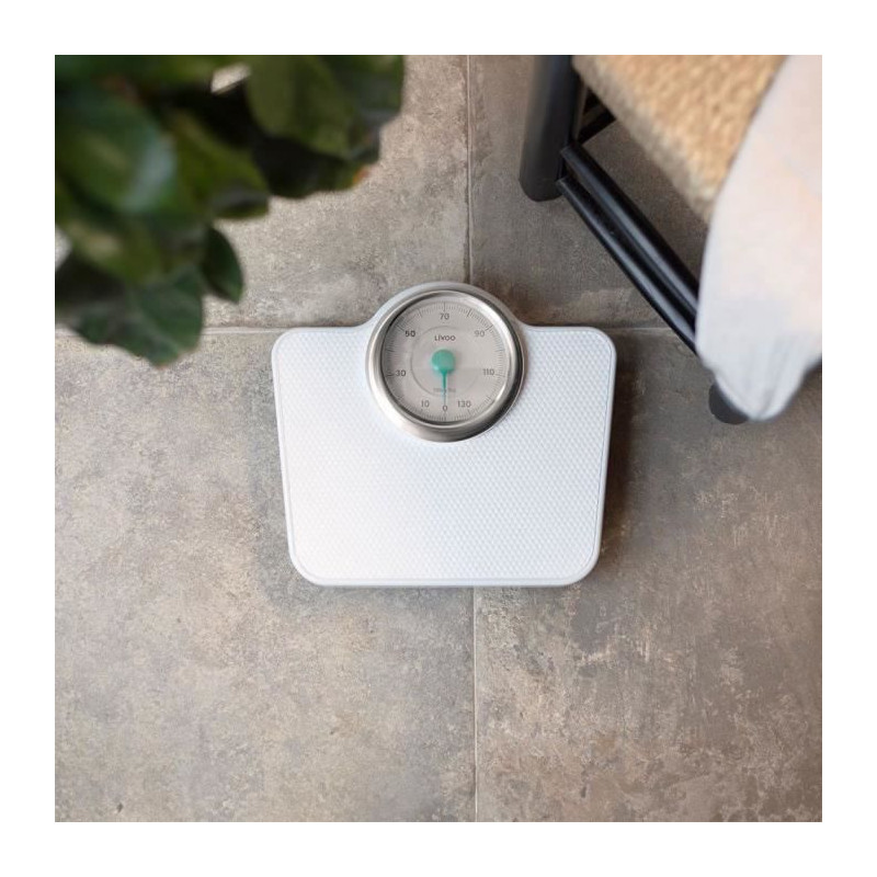 Pese-personne mécanique rétro - LIVOO - DOM490 - Sans pile - Max 136 kg - Métal antidérapant - Blanc