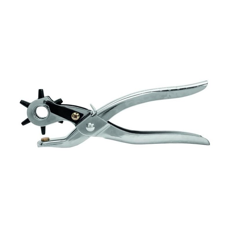 La pince a poinçons RAPID RP03 permet de créer des trous de 2.5 a 4.5mm dans le cuir, les toiles épaisses et le tissu. Fabriquée en acier chromé durable, elle dispose d'un systeme de verrouillage et d'une sélection de diametre par rotation. Garantie 2 ans.