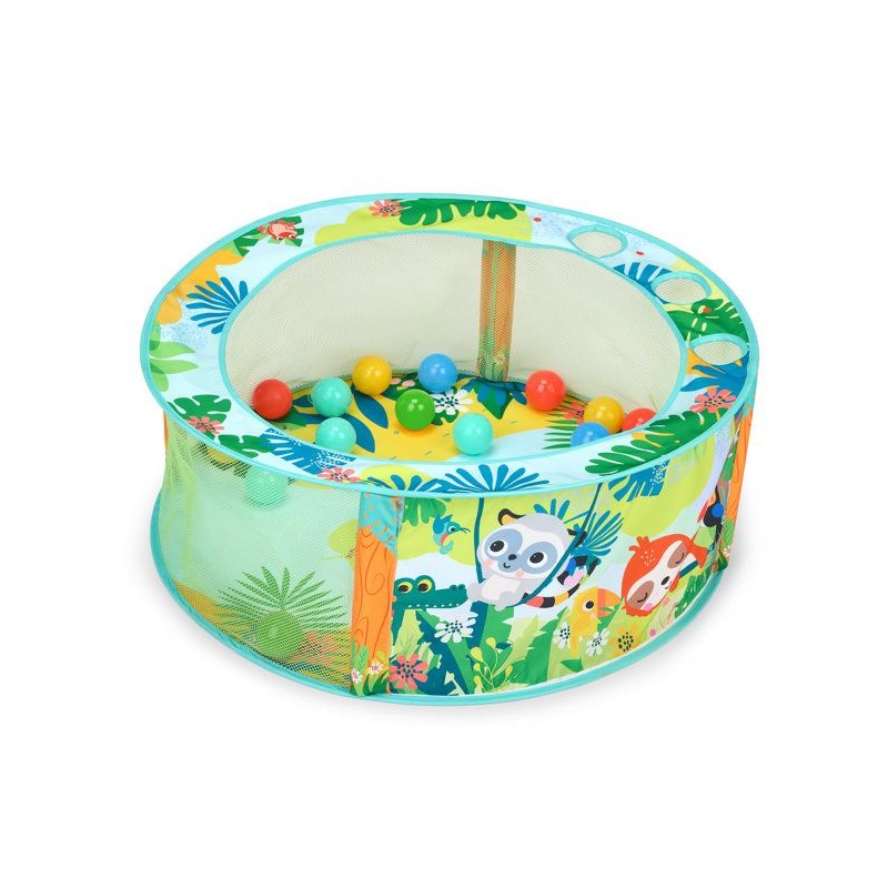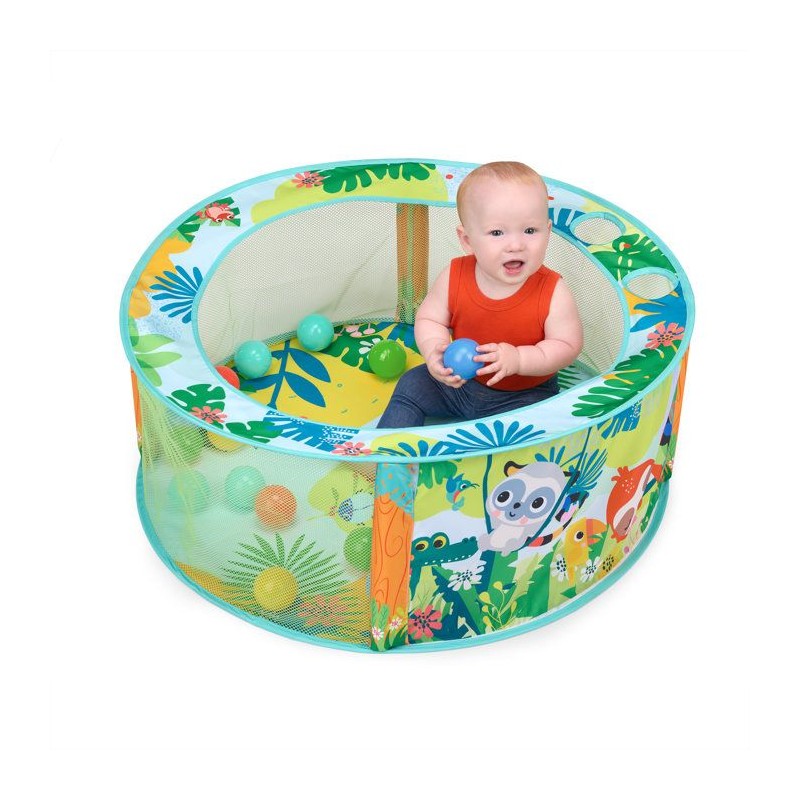BRIGHT STARTS- Piscine a Balles Rainforest pliable avec sac de transport inclus, 20 balles