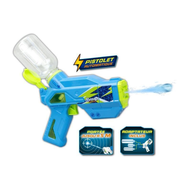 HYDRO MAD MINI BLASTER ASST- Petit Pistolet a eau électronique avec sa recharge - Distance de tir jusqu'a 5 m, Réservoir d'eau de 100 ml intégré + 1 réservoir de 200 ml et son adaptateur 2 couleurs disponible - Dimensions produit : L19 x P4 x H16cm - Temps de jeu : 60mins - Des 8 ans