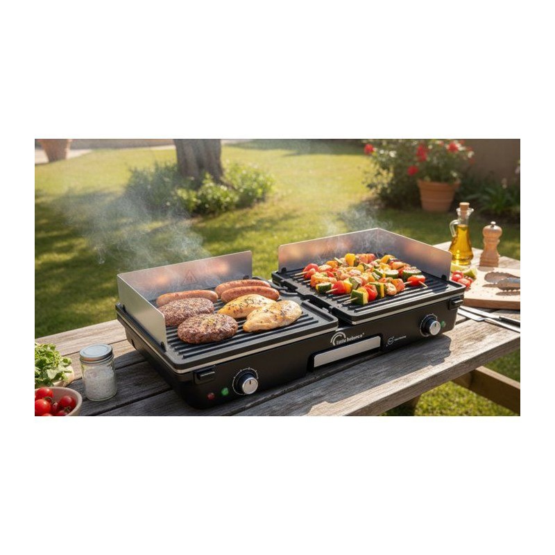 Découvrez le plaisir d'une cuisson saine, maîtrisée et conviviale avec la plancha électrique LITTLE BALANCE Dual 2000 Nopifas. Grâce a ses 2 zones de cuisson indépendantes (29 × 25 cm), vous pouvez préparer simultanément viandes, poissons, légumes ou accompagnements, chacun a la température idéale pour un résultat toujours parfait. Ses 2000 W garantissent une montée en chaleur rapide et homogene, tandis que ses 2 thermostats réglables offrent un contrôle précis selon vos envies culinaires. Dotée d'un revetement sans PFAS, elle permet une cuisson plus respectueuse de la santé tout en assurant une excellente anti-adhérence. Les grilles amovibles compatibles lave-vaisselle facilitent grandement le nettoyage, et les protections anti-projections assurent un confort d'utilisation optimal. Robuste, élégante et conçue pour un usage régulier, cette plancha est l'alliée idéale pour des repas gourmands, variés et réussis a chaque utilisation.