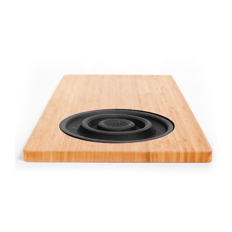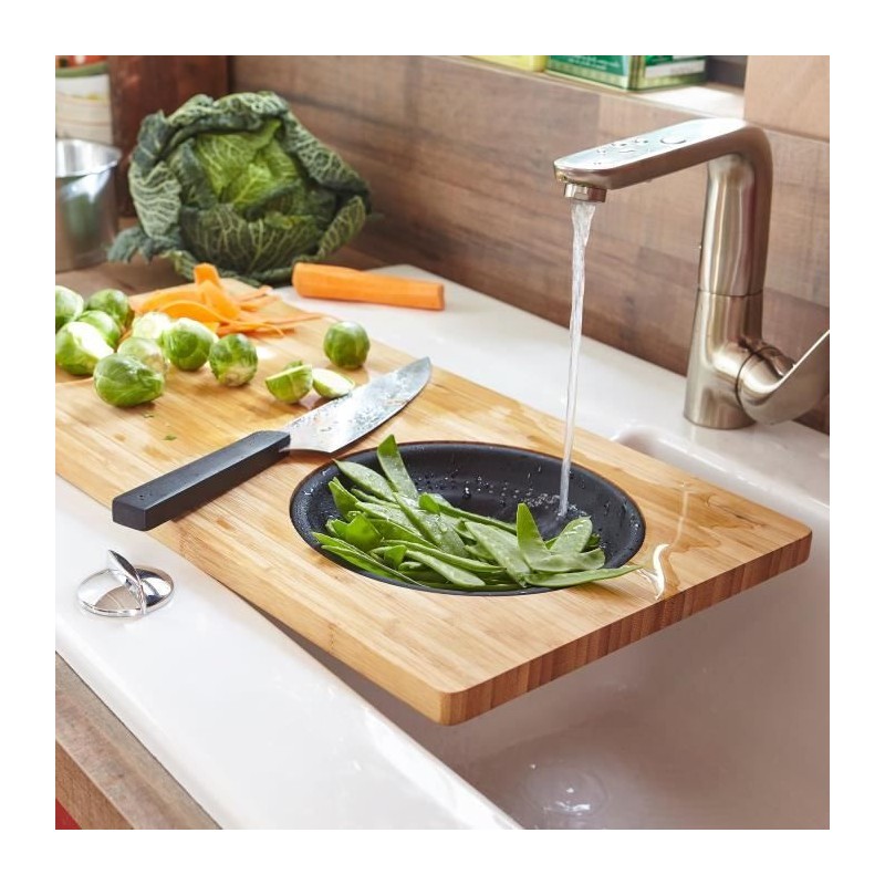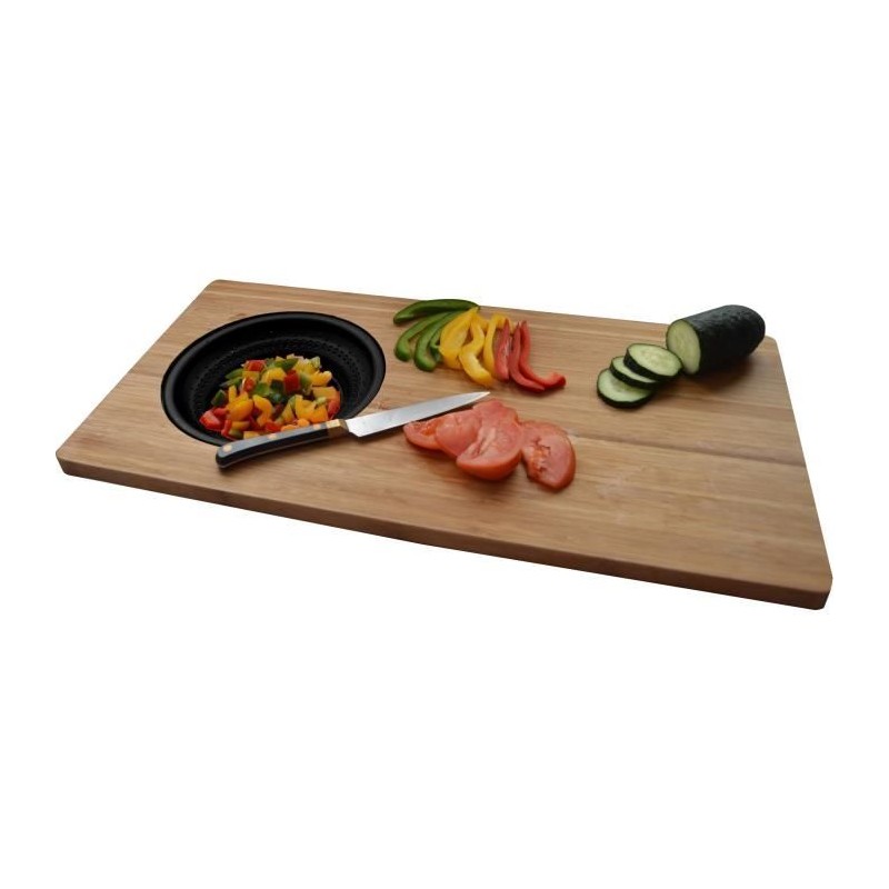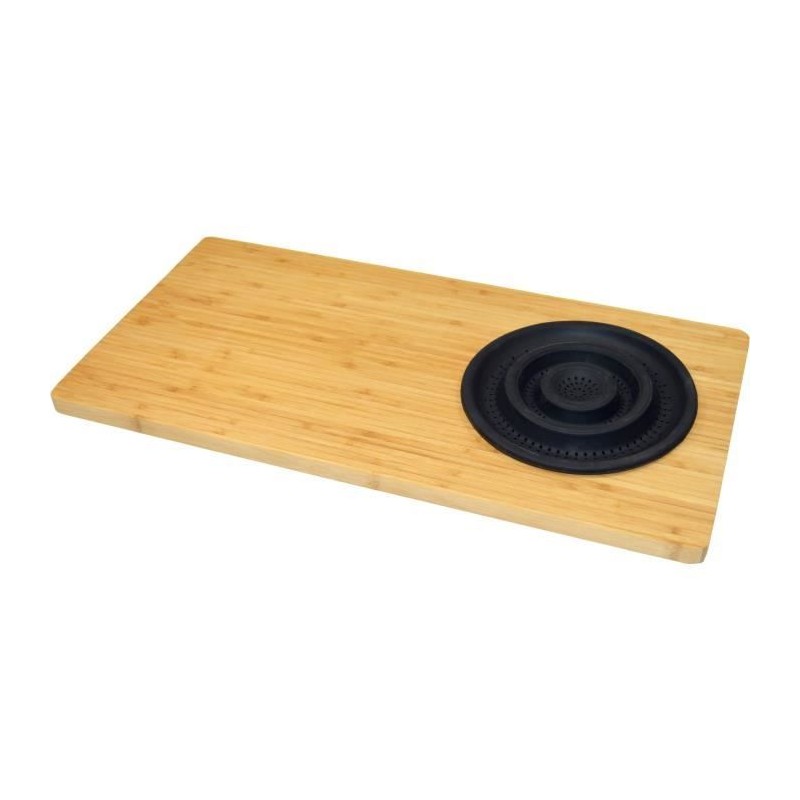 Dimensions : 58 x 29 x 1,8 cm - En bambou - Avec passoire - Pratique et idéal pour un usage sur évier
