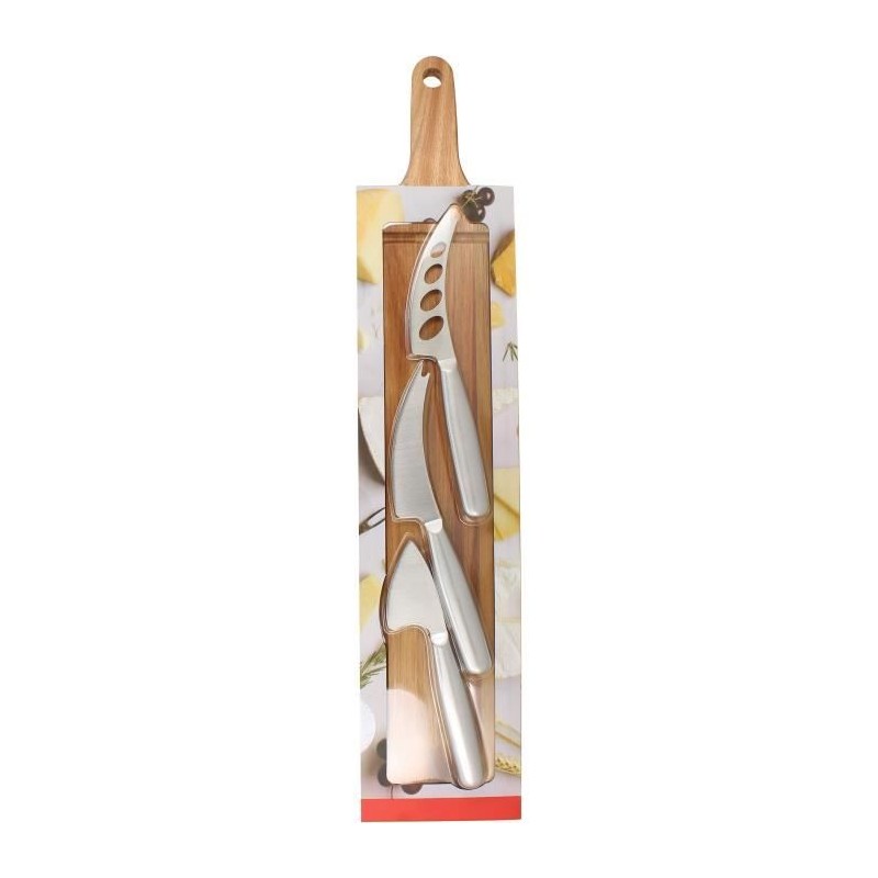 Planche a decouper - MENASTYL - 5040079 - Rectangulaire - En bois d'acacia - Avec 3 couteaux a fromage en inox