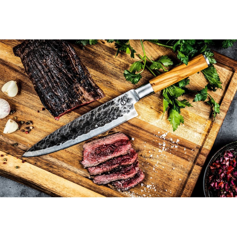 Cette planche a découper est de la marque Style de Vie. Elle est faite de bois d'acacia et est un accessoire naturel pour votre cuisine. Grâce a son aspect naturel, elle peut toujours rester sur le plan de travail. La planche a découper est authentique et originale, car c'est un produit naturel, chaque planche a découper est unique par sa couleur, sa forme et son grain. La planche a découper est équipée de poignées, de pieds antidérapants sur le fond et d'une rainure a jus. Donc tres pratique a utiliser ! Cette planche a découper mesure 50 cm de long, 35 cm de large et 3 cm de profondeur.