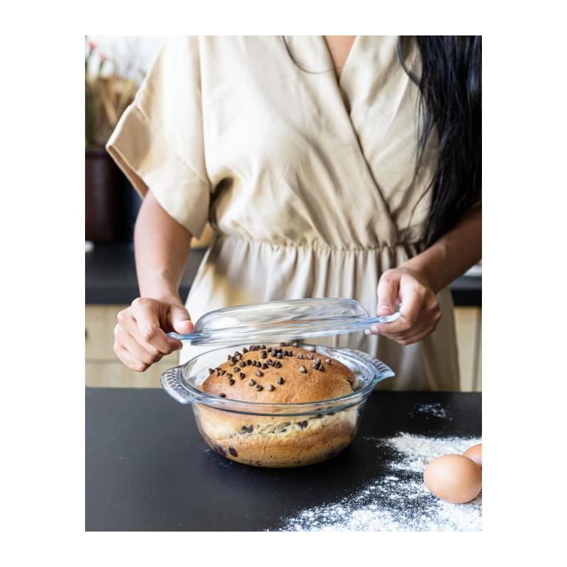 Lot de 2 cocottes rondes en verre 2,3 L - Supporte des températures extremes de - 40°C a + 350°C - Résistant aux chocs thermiques jusqu'a 240°C, peut passer du congélateur a - 20°C au four a 220°C - 2 poignées latérales pour une prise en main facile et pour éviter tout risque de brûlures - Résistant aux rayures - Matériau sain sans BPA et hygiénique qui ne retient ni les tâches ni les odeurs