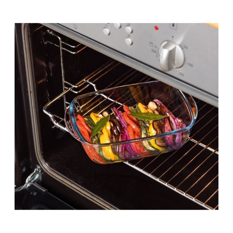 Cook & Store - Lot de 3 plats rectangulaire en verre avec couvercle 0,4-1,1-2,5 L - Supporte des températures extremes de -40°C a +350°C - Résistant aux chocs thermiques jusqu'a 240°C, peut passer du congélateur a -20°C au four a 220°C - Matériau sain sans BPA et hygiénique qui ne retient ni les tâches ni les odeurs - Résistant aux rayures
