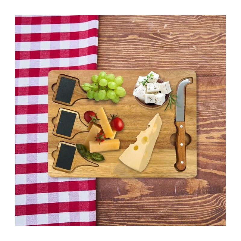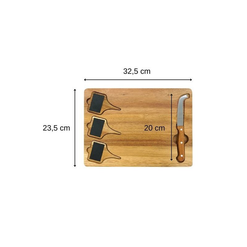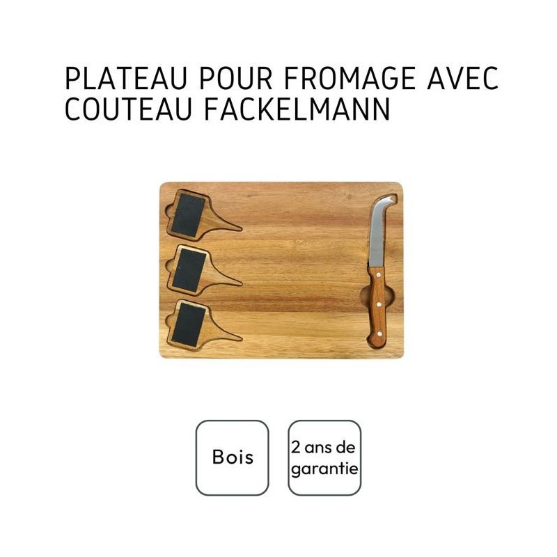 Plateau a fromage - FACKELMANN - Avec ardoises + couteau a fromage - 32 x 23 cm - Bois