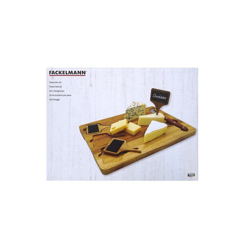 Les ardoises du plateau a fromage sont parfaites pour inscrire le nom des fromages présentés sur le plateau, chaque invité peut ensuite se servir et couper directement le fromage sur le plateau. Ce plateau a fromage est en bois et mesure 32,5 x 23,5 cm et le couteau mesure 20 cm, ce plateau a fromages est beaucoup plus chaleureux qu'une simple cloche a fromages et vous pouvez l'utiliser comme plateau apéritif. Pour un apéritif réussi, placez vos morceaux de fromages et piquez les ardoises dedans, ajoutez des fruits frais et secs, des tranches de pain et de la charcuterie et servez a boire ! Fackelmann propose de nombreux accessoires de cuisine pour faciliter la cuisine au quotidien et ce plateau a charcuterie et fromage est un parfait exemple de l'alliance entre pratique et esthétique. Cet accessoire de cuisine est un plateau de charcuterie et fromage original, design et convivial. Il est parfait pour présenter et servir le fromage, la charcuterie et plus globalement, l'apéritif. Ce plateau a fromages est vendu avec son couteau a fromage et ses trois ardoises qui se rangent dans la planche. Utilisez ce type de présentation de plateau de fromage lorsque vous recevez des invités pour présenter votre apéritif en beauté. Fackelmann France est une entreprise spécialisée dans la distribution d'ustensiles de cuisine et de pâtisserie ainsi que de moules a gâteaux et de plaques de cuisson. L'entreprise tente d'apporter une certaine facilité dans la façon de cuisiner de chacun grâce a ses ustensiles malins. Les ustensiles de cuisine de Fackelmann France sont proposés a tous les profils de cuisiniers pour une utilisation simple et quotidienne. Les fouets, spatules, louches, éplucheurs, planches a découper et bien d'autres sont a votre portée afin de préparer de délicieuses recettes toujours plus originales.