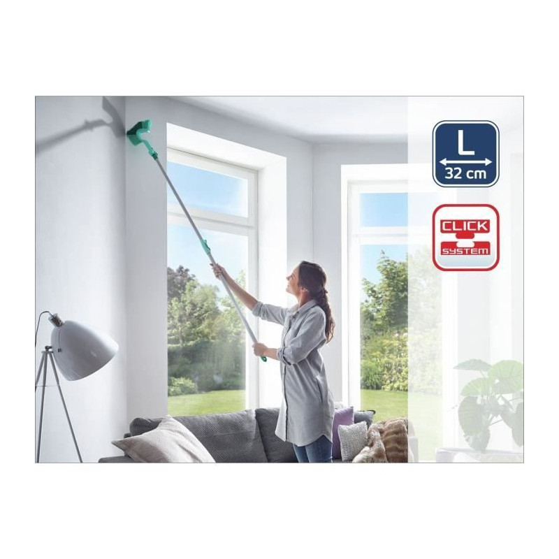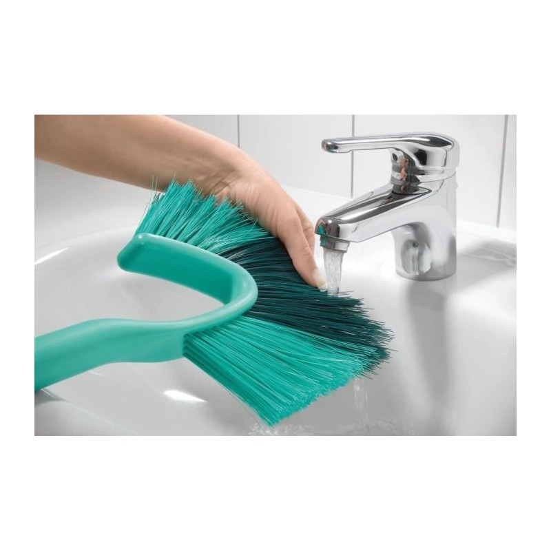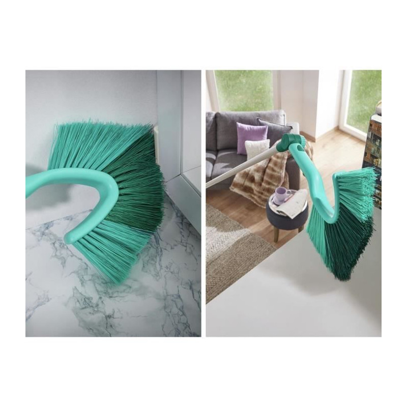 Grâce a sa forme spéciale triangulaire, le balai tete de loup Dusty va chercher la poussiere, les toiles d'araignée et la saleté dans les moindres recoins. Il passe meme derriere les tringles a rideau. Ce balai manuel compact est doté d'un embout Click System permettant de le fixer sur un des manches Click System Leifheit, disponibles séparément. Il peut etre nettoyé sous l'eau courante.