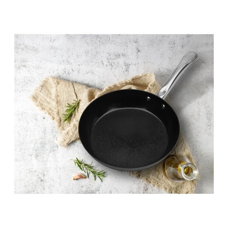 Découvrez la poele AVANTI de 28 cm en acier carbone de haute qualité, idéale pour frire et sauter. Son manche professionnel riveté et sa compatibilité avec l'induction assurent une cuisson optimale. Compatible avec le four et facile a nettoyer au lave-vaisselle.