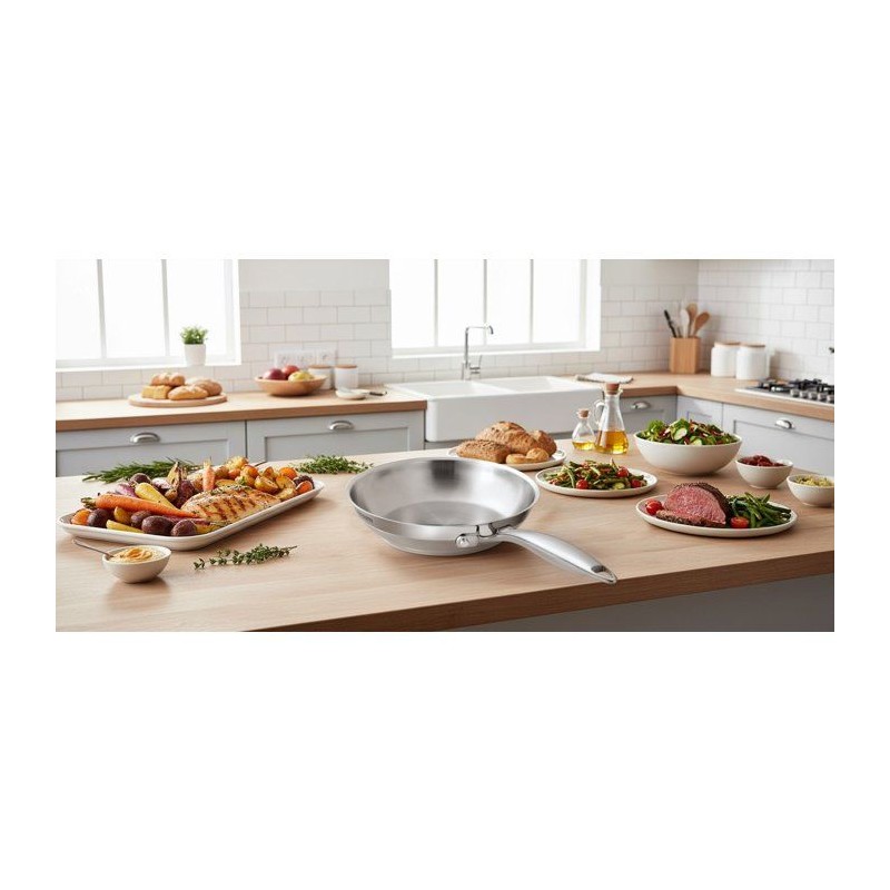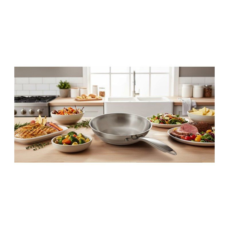 Pratique, durable et élégante, la poele Grand Chef ARTHUR MARTIN est l'outil parfait pour une cuisson précise au quotidien. Son inox 18/10 de qualité professionnelle assure une résistance remarquable et conserve son éclat au fil des utilisations. Grâce a sa conception ergonomique et a ses poignées rivetées, elle offre une excellente maniabilité. Compatible avec tous les types de feux, y compris induction, elle garantit une montée en température efficace pour saisir, dorer ou réchauffer vos aliments avec maîtrise.