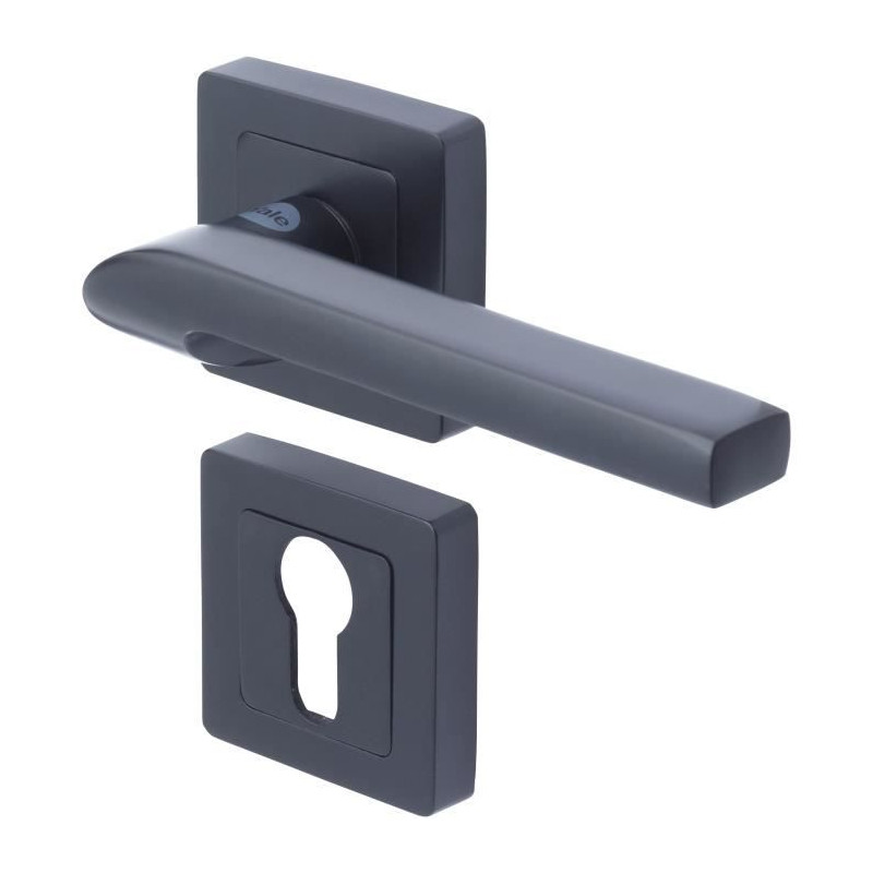 YALE - YPP7-S-PE Poignée de porte carrée de 7 noir YALE - Modele Sienna - passage de cylindre euro