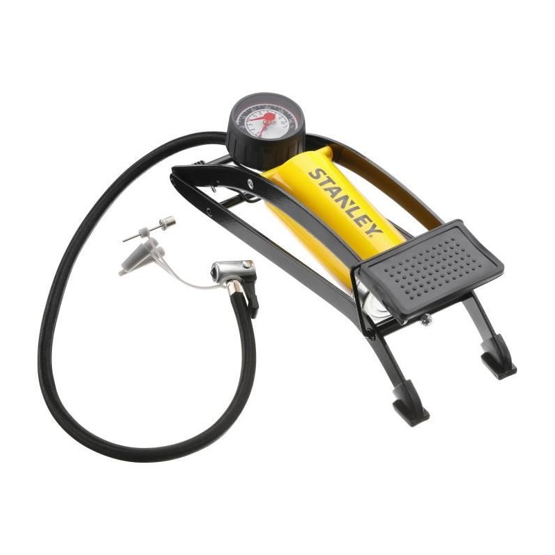 Cette pompe a pied STANLEY est idéale pour gonfler vos pneus de voiture, vélo ou ballons. Elle est compacte, légere (environ 1 kg) et dispose d'une pédale avec grip pour un meilleur maintien. Elle peut atteindre une pression maximale de 100 psi / 6,9 bars. Livrée avec 3 adaptateurs, elle est facile a utiliser et a ranger.