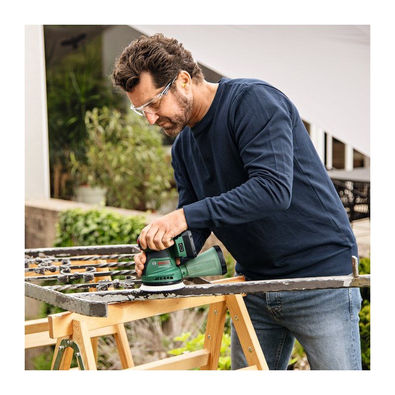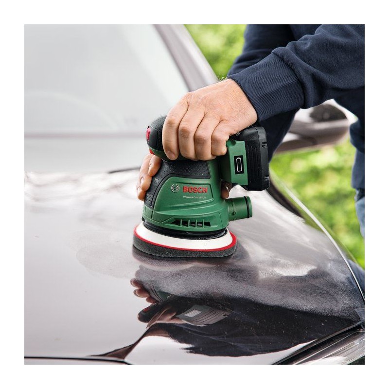 La ponceuse excentrique UniversalOrbit 18V-20 Bosch assure des finitions de ponçage et polissage parfaites sur les sols, les meubles et autres grandes surfaces planes ou courbes. Le puissant moteur et la présélection électronique de vitesse permettent de poncer tres efficacement avec une vitesse parfaitement adaptée au type de matériau, qu'il s'agisse de bois, de plâtre ou bien de surfaces vernies ou polies. Le boîtier microfiltre innovant réduit la poussiere, permet un travail plus propre tout en améliorant le confort de maniement. L'électronique Syneon Bosch intégrée protege l'outil et la batterie. L'outil fait partie du systeme POWER FOR ALL 18V. Une seule batterie suffit pour tous les outils POWER FOR ALL 18V.
