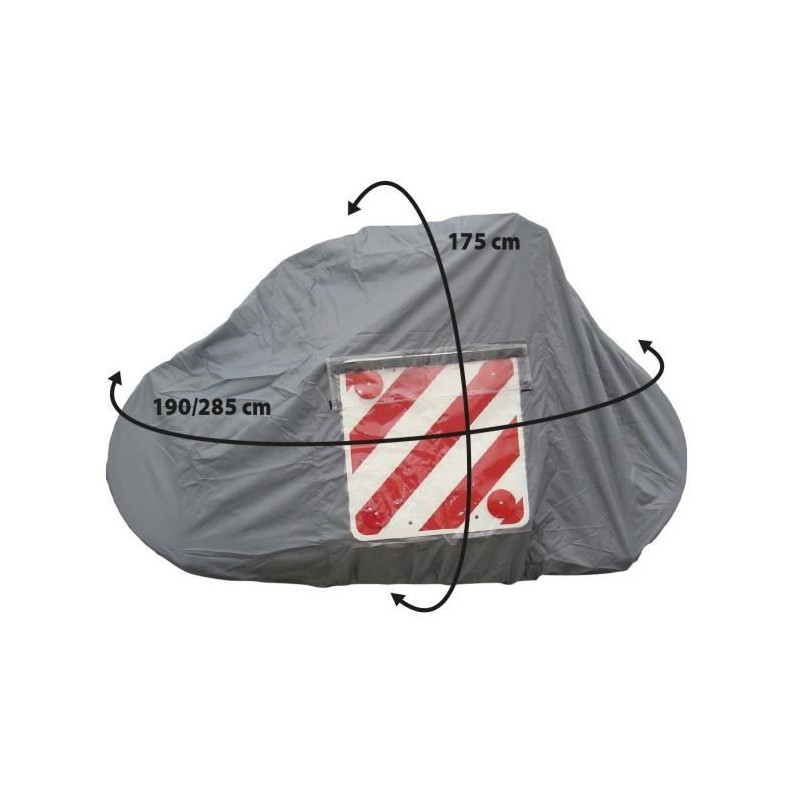 Bâche en polyester enduit imperméable 110 g/m². Protege vos vélos des intempéries, de la saleté et des regards malveillants. De par son systeme de fixation par sangles ajustables, cette bâche résistante, légere et hydrofuge assure la protection de vos deux roues en roulant comme a l'arret. Pour plus de sécurité, elle est dotée d'une fenetre transparente spéciale pour ranger votre panneau de signalisation réfl échissant (non fourni). Modele adapté a tous les porte-vélos sur paroi ou portes arriere de camping-car. 2 sangles réglables fournies. Modele : Pour 2-3 vélos
