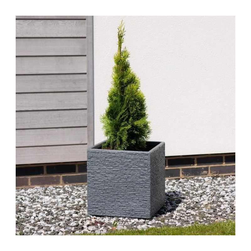Le pot a fleur LARGE SQUARE SLATE Couleur Cendres (38 cm x 39 cm) illumine vos extérieurs avec sa teinte claire et sa texture ardoise, idéale pour une décoration moderne et apaisante.