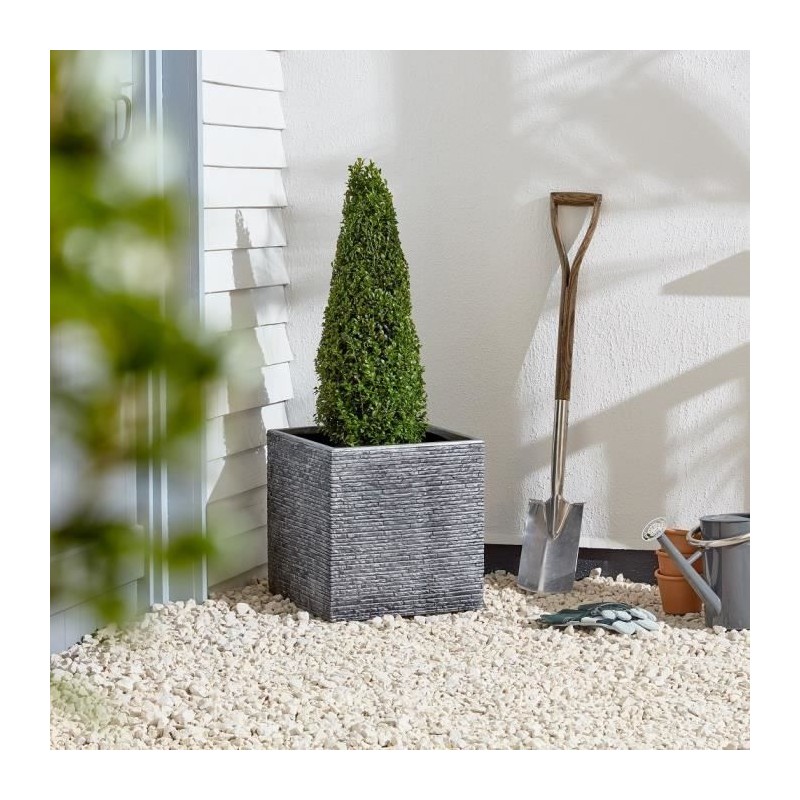 Pot de fleur - STRATA - L - Carré - Slate - 38cm SQ x 39cm H - Couleur Etain