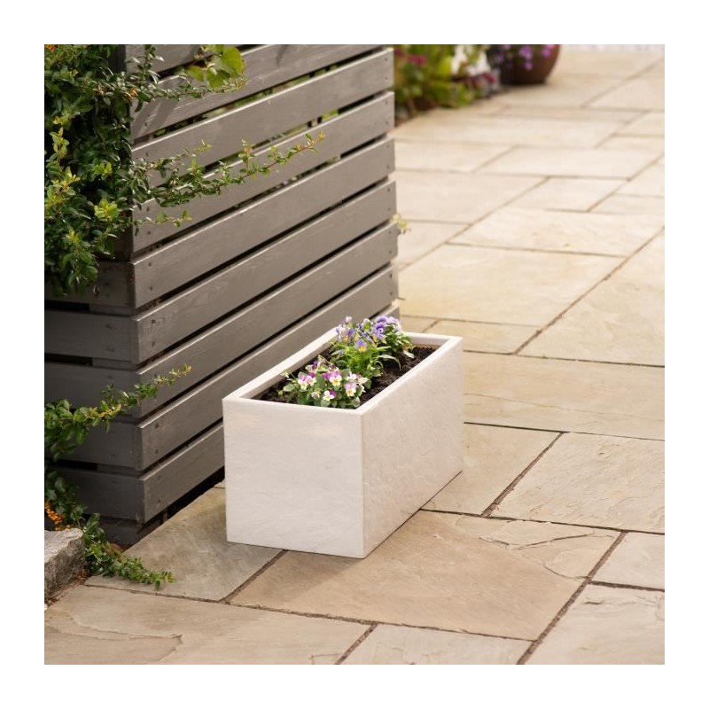 Le pot a fleur RIVEN TROUGH Couleur Pierre (46,5 cm L x 38,5 cm l x 17,5 cm H) est idéal pour les plantations en ligne. Sa finition pierre et son format rectangulaire en font un choix élégant pour balcons et rebords de fenetres.