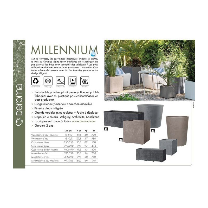 Pot de fleurs rond - DEROMA - Millennium - 79 L - Ø 50 cm - A réserve d'eau et roulettes - Marron