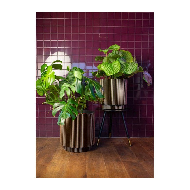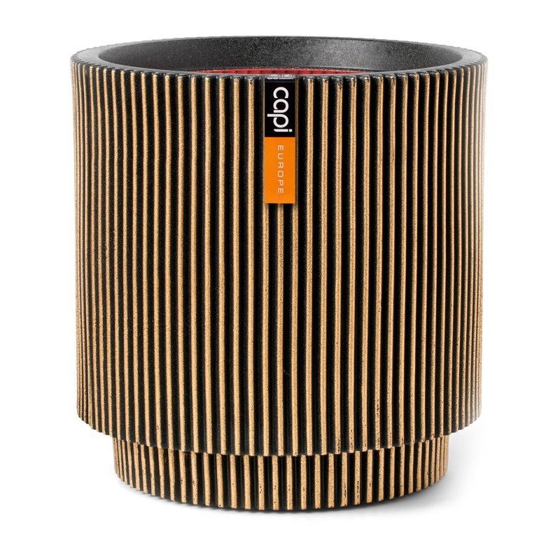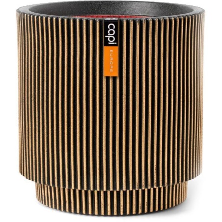 Vase cylindre - CAPI EUROPE - Groove NL - 36 x 38 cm - Noir/or