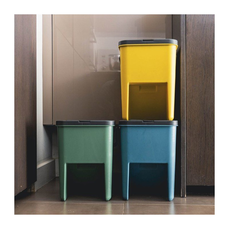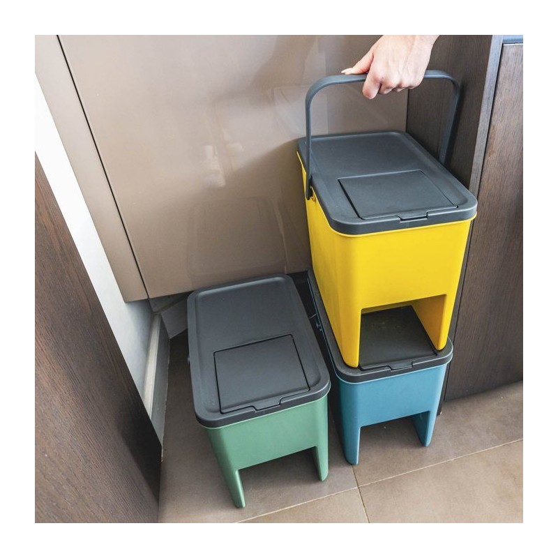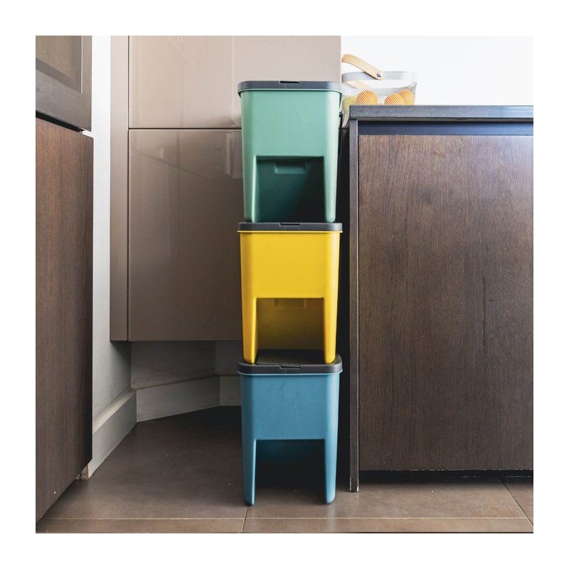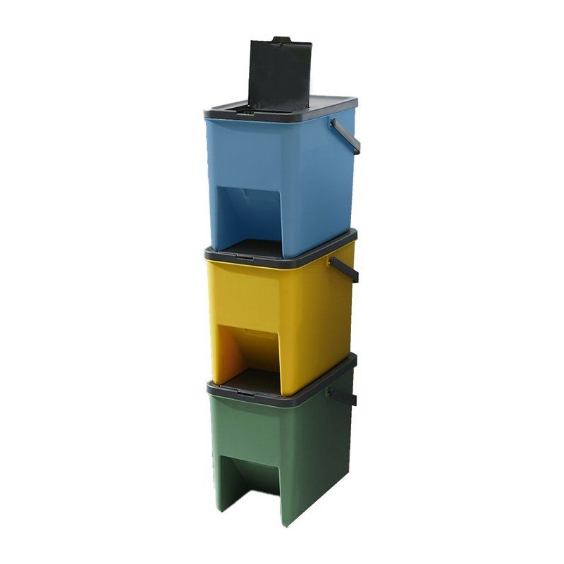 Lot de 3 Poubelles de Tri Empilables en Plastique BERGEN - 20L - Coloris Jaune, Vert & Bleu - KITCHEN MOVE