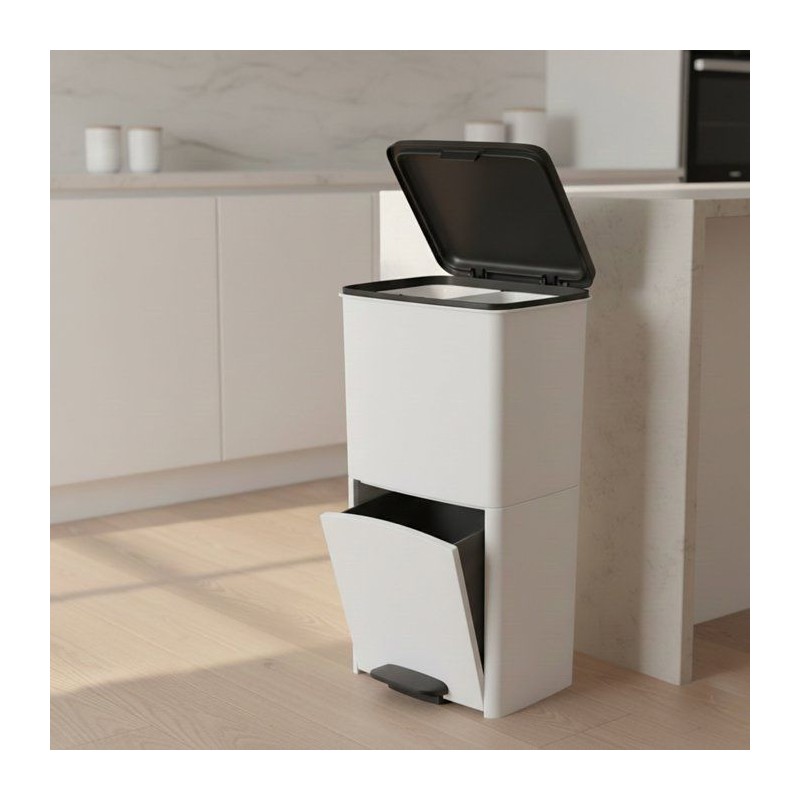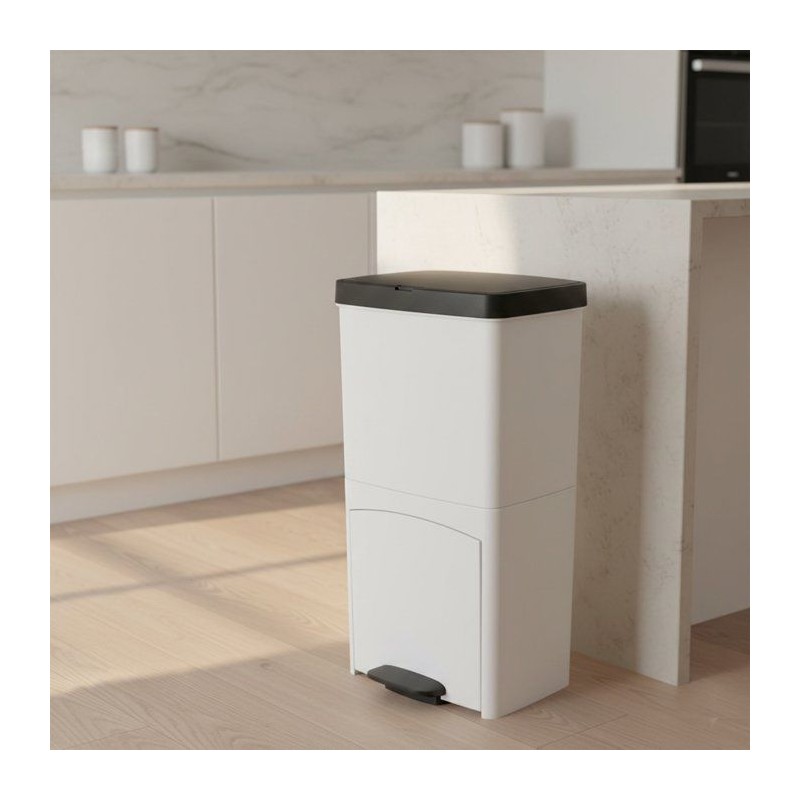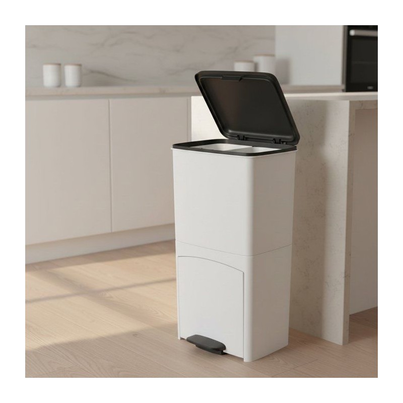 La PICEA 70 L Blanc offre deux compartiments (40 L + tiroir 30 L) pour un tri optimisé. Plastique recyclé, légere, stable et facile a nettoyer. Dimensions : 39 × 29 × 76,5 cm.