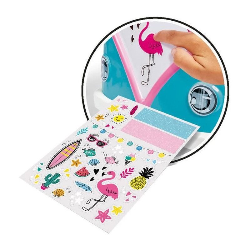 Poupée mannequin 29cm Steffi love et son camping car qui s'ouvre pour y laisser apparaître une cuisine, un salon, un lit, et table et de nombreux accessoires. Longueur du camping car : 51cm, a roues libres. Des 3 ans