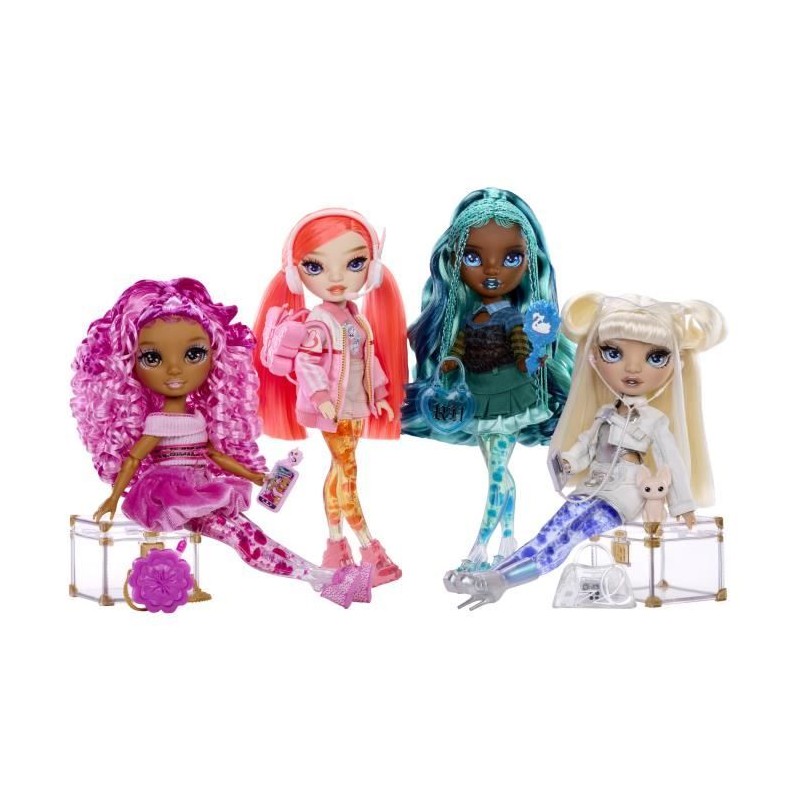 Les poupées Sparkle & Shine vont te faire découvrir leur monde fantastique coloré, de créativité et d'amitié, où tout est possible. Leurs jambes sont remplies de liquide pailleté hypnotique. 4 modeles de 27cm a collectionner. Des 4 ans.