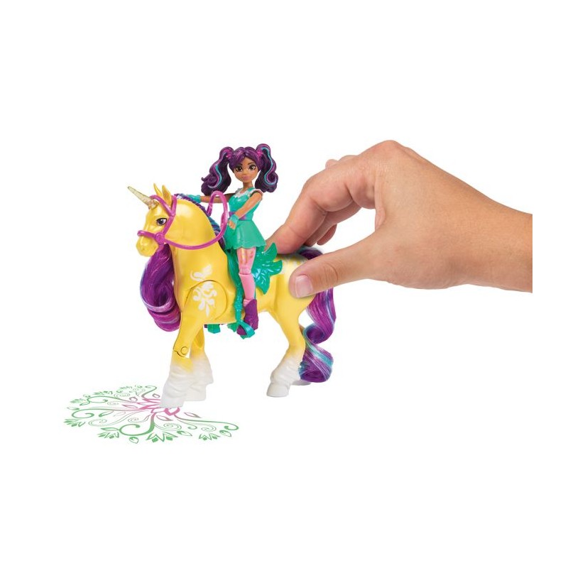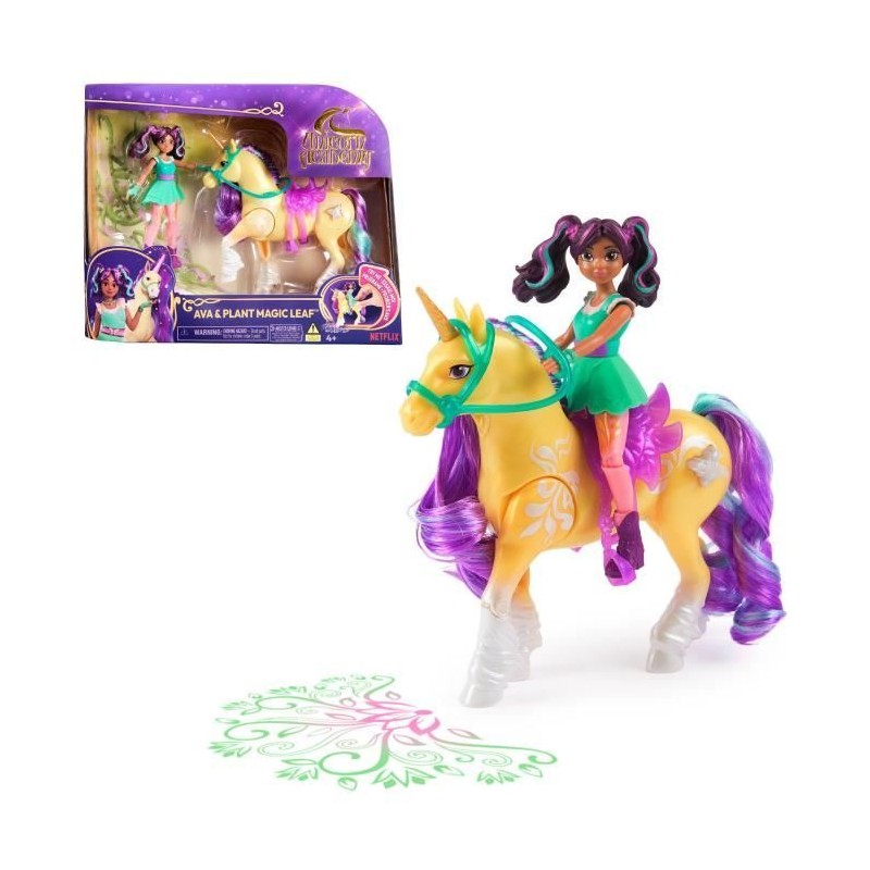 Découvrez la Licorne Leaf de Spin Master, accompagnée de la poupée Ava. Ce jouet lumineux de 12,7 cm offre 7 points d'articulation et des effets magiques inspirés de la série Netflix. Idéal pour les enfants a partir de 4 ans, il promet des heures de jeu imaginatif avec des détails soignés et une connexion magique entre Ava et sa licorne.