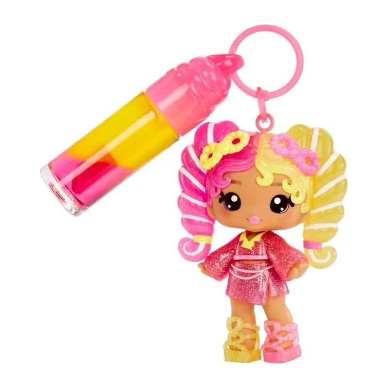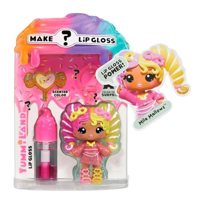 Crée ton gloss pailleté et parfumé bigoût : ajoute le parfum secret a la base ainsi que les paillettes magiques, mélange et regarde le gloss changer de couleur.Il a maintenant 2 couleurs bien distinctes ! Plonge ta poupée dans l'eau froide pour changer la couleur de ses cheveux. 6 Yummis parfumées de 10 cm a collectionner et a emporter partout grâce au porte-clés inclus. Des 4 ans.