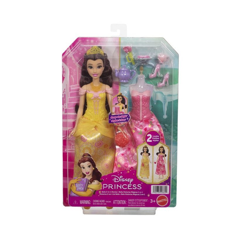 2 occasions de jeu sont proposées avec la princesse Belle. La poupée s'adapte aux histoires et se transforme grâce aux 2 tenues et aux 7 accessoires.